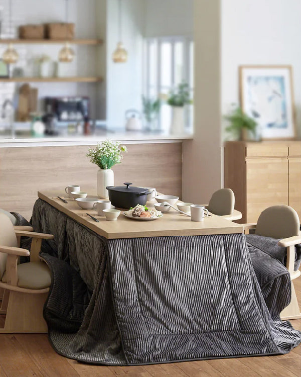 日本の冬に欠かせないこたつ。家族団らんやひとりのリラックスタイムに合わせて、特別な空間を作り出します。家族が集まれば、こたつのぬくもりの中で自然と会話が弾み、笑い声がこだまする特別な空間に。あたたかなこたつ布団に包まれて、食卓を囲むひとときは、心までぽかぽかとあたためてくれます。こたつテーブルでひとりで過ごす時間には、自分だけのリラックススペースとして。お気に入りの本を読んだり、映画を観たりしながら、ゆったりと流れる時間に身を任せる。その時に合わせて自在に変わる最高の居場所を探ります。