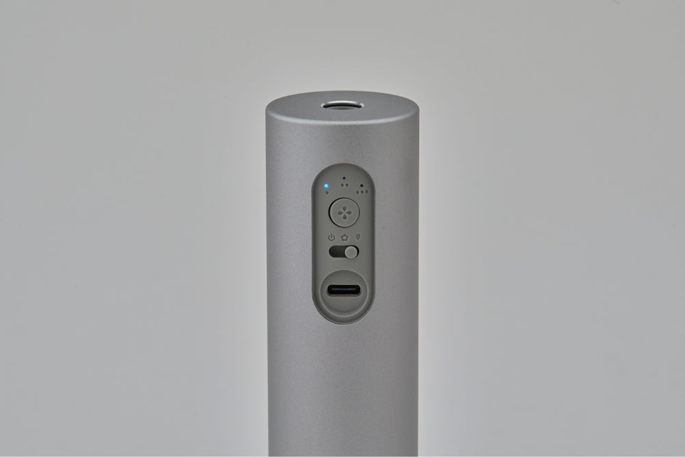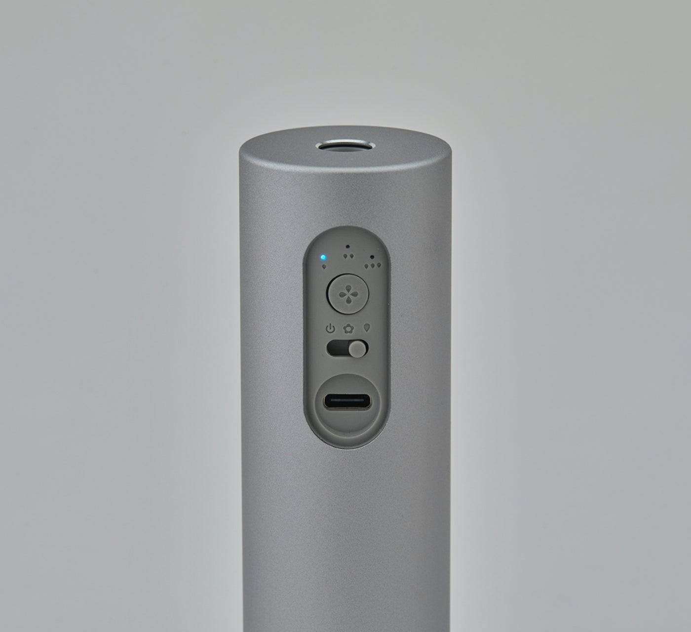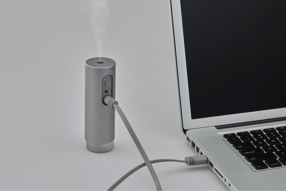 1回の充電で約20時間(※1)の連続運転が可能です。電池残量が少なくなったら付属のUSBケーブルでPCやモバイルバッテリーに接続して充電することができます。裏表を気にせず使えるUSB Type-Cコネクタを採用。噴霧量インジケーターにて運転中にバッテリー残量も確認できます。