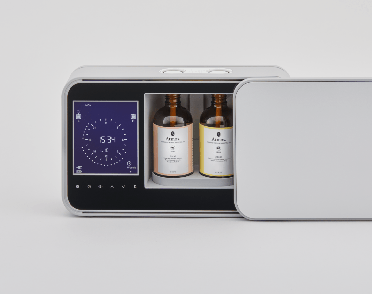リラックス、リフレッシュ、クリーン。1日の時間の流れの中で必要な香りや呼吸の質はそれぞれに異なります。2本のボトルの噴霧パターンや曜日ごとに設定可能なスケジュール運転モードを設定することで、必要なタイミングに必要な空間を自在に創り出すことができます。