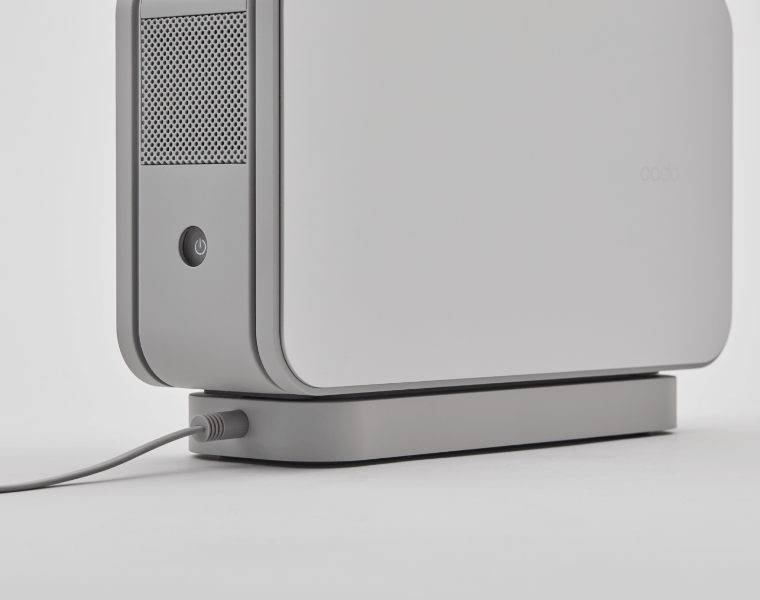 インテリアによらないシンプルな外観。約 幅291mm×高さ174mmのコンパクトサイズ (従来市場製品比較 約 1/2)ながら幅広いスペースに対応し、床置きや壁掛け設置も可能です。