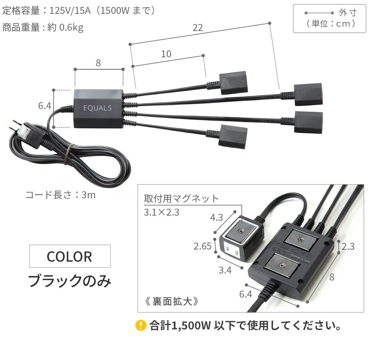 WALLテレビスタンドは、本体がスチール素材のため、マグネット付きの電源タップを使用することで、テレビ以外の周辺機器のコード類も写真のように支柱の裏面に回してまとめることができ、目立つことなく収納が可能です。