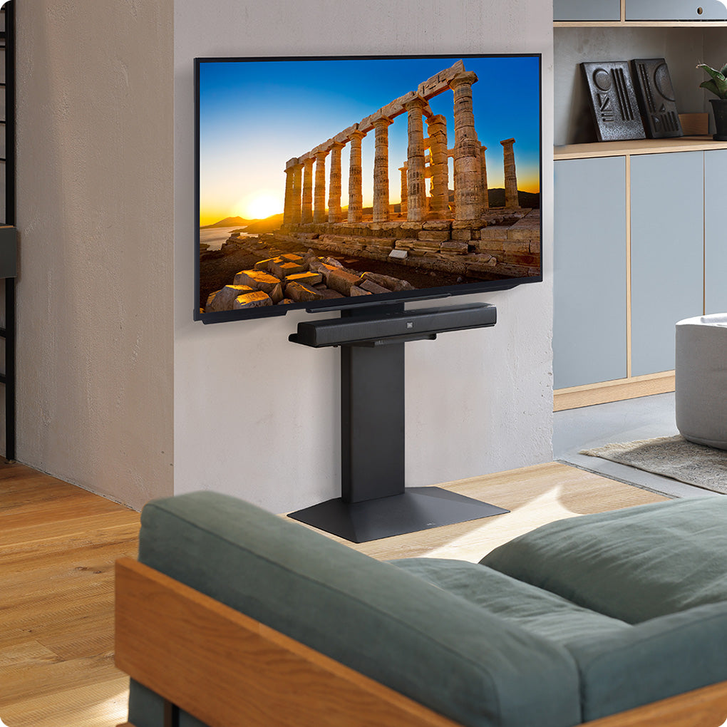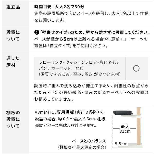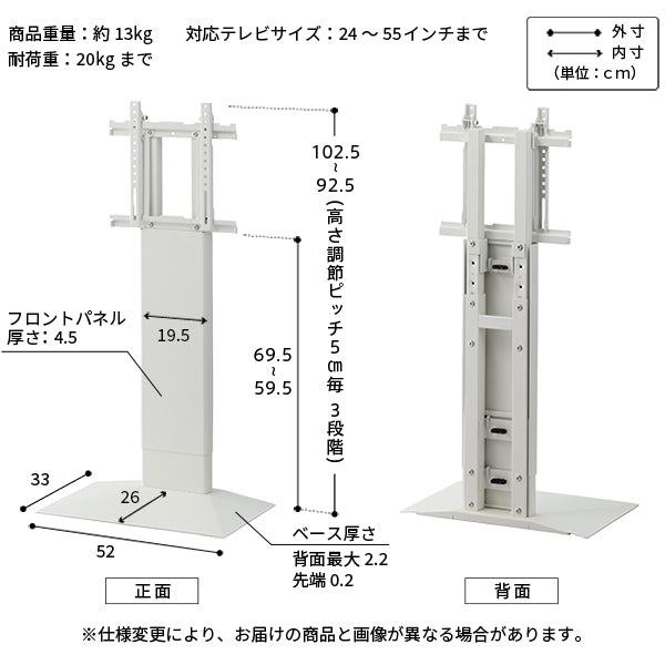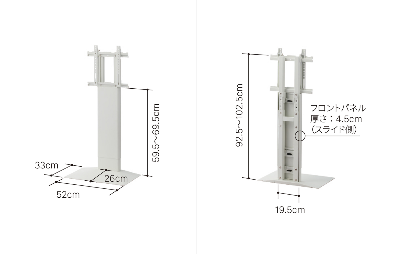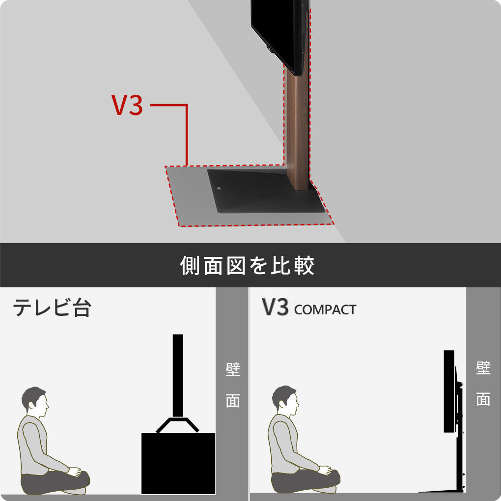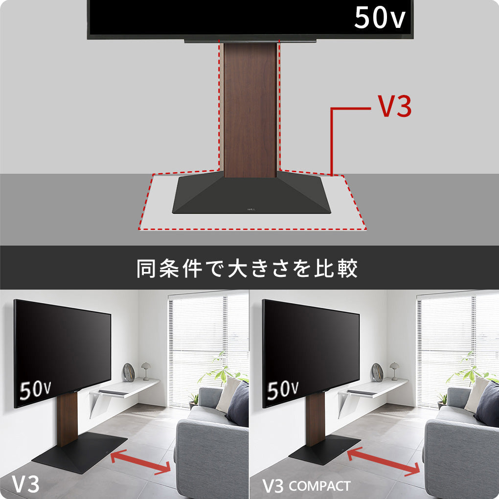 24~55インチまで対応可能なV3よりベースと支柱が小さいモデル。高さは3段階で調節が可能。