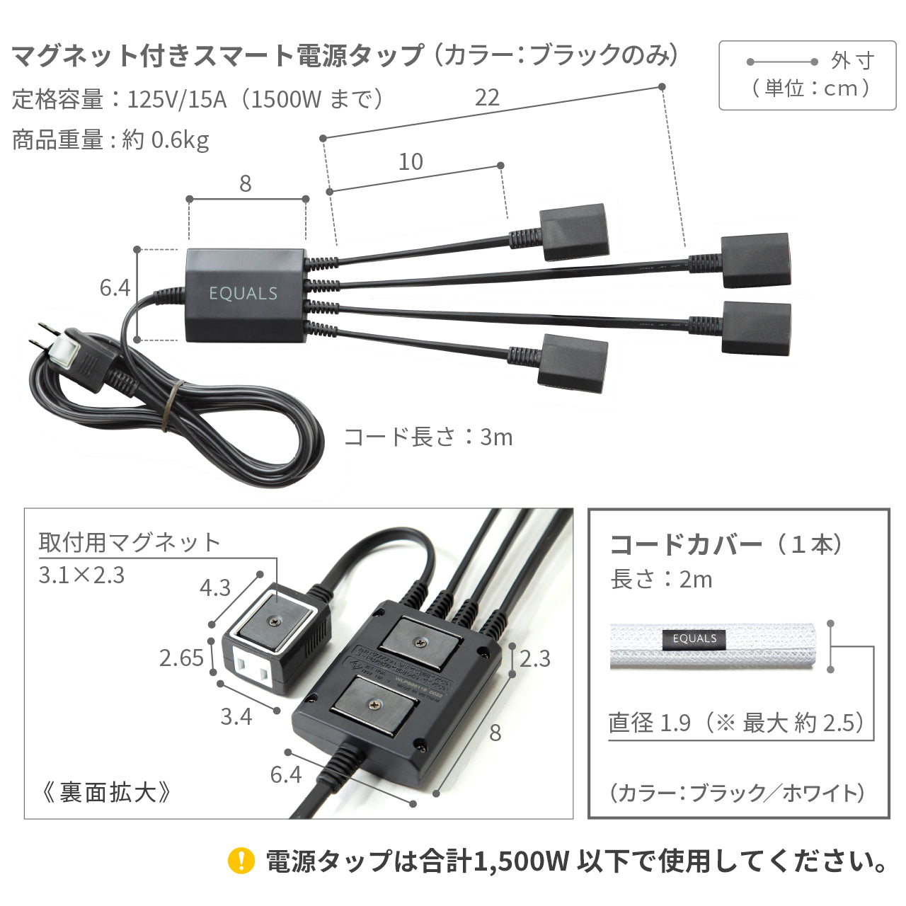 WALLテレビスタンドは、本体がスチール素材のため、マグネット付きの電源タップを使用することで、テレビ以外の周辺機器のコード類も写真のように支柱の裏面に回してまとめることができ、目立つことなく収納が可能です。